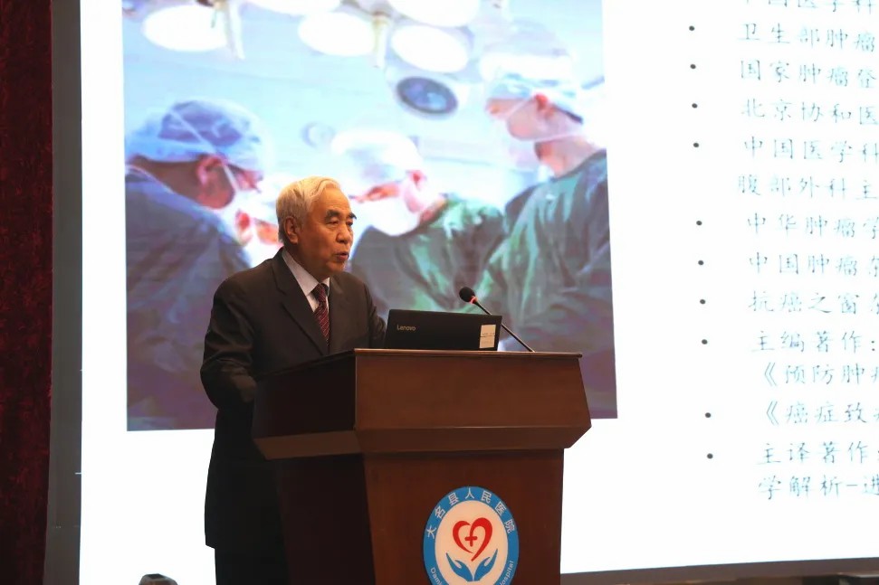 邯郸市卫健委副主任张玉成致辞,他表示,市卫健委将一如既往地支持大名县人民医院的发展,在政策、资金、人才等方面给予倾斜和支持。我们也希望北京肿瘤专家团队能够长期关注和支持大名县人民医院的肿瘤防治工作,定期来邯坐诊、讲学、指导,为我市培养更多的肿瘤防治专业人才。