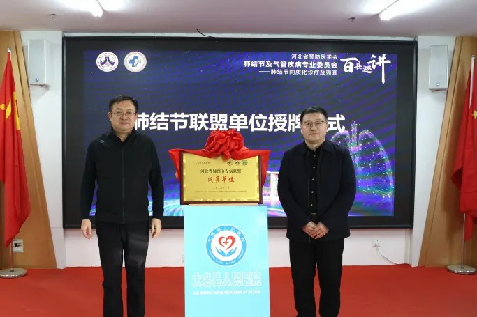 随后,进行了揭牌仪式, 河北医科大学第一医院宋适恒教授与我院党委书记程东强共同揭牌,大名县人民医院成为“河北省肺结节专病联盟成员单位”。