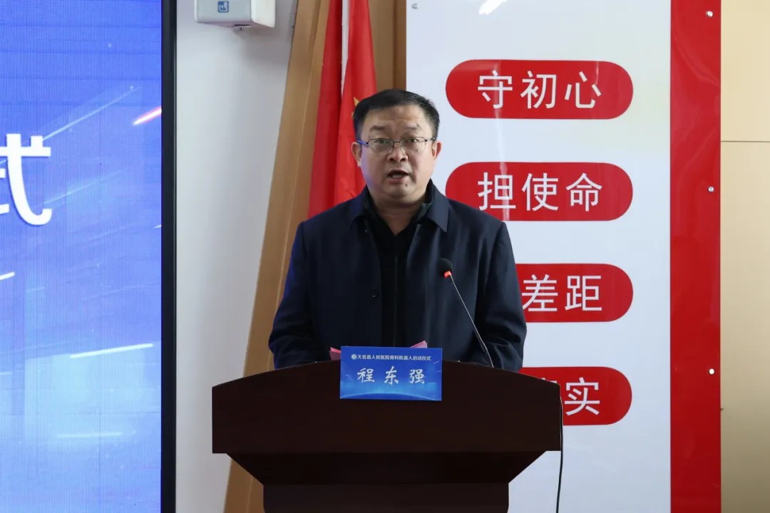 骨科机器人启动不仅是大名县人民医院发展历程中的一个重要里程碑,更是医院迈向智能化、精准化医疗新时代的重要一步,我院将不断探索和实践其在骨科领域的应用,努力为患者提供更加精准、高效的医疗服务。同时,医院也将继续加强与其他医疗机构的交流与合作,共同推动医疗卫生事业的进步和发展。