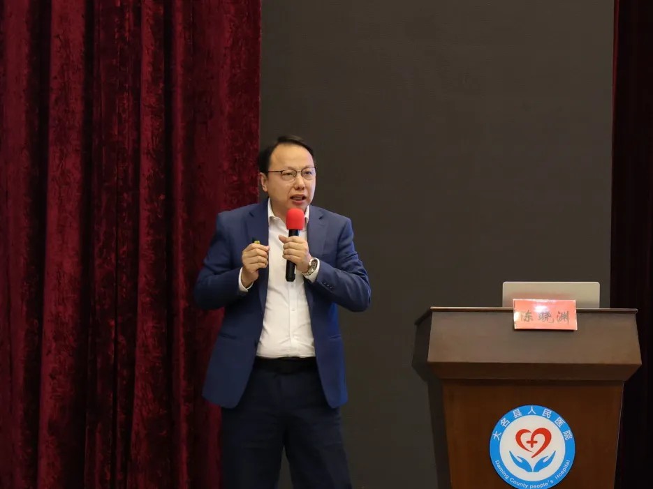 3 月 17 日下午,大名县人民医院开展“医者的文化与医院文化管理暨医德医风建设”培训会。特邀威高管理学院陈晓渊教授来院授课。党委书记程东强出席会议并致辞,院领导班子及全体医护参会。