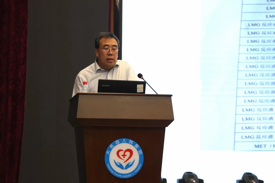 邯郸市卫健委副主任张玉成致辞,他表示,市卫健委将一如既往地支持大名县人民医院的发展,在政策、资金、人才等方面给予倾斜和支持。我们也希望北京肿瘤专家团队能够长期关注和支持大名县人民医院的肿瘤防治工作,定期来邯坐诊、讲学、指导,为我市培养更多的肿瘤防治专业人才。