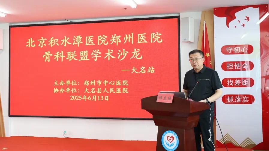 6月13日下午,“北京积水潭医院郑州医院骨科联盟学术沙龙—大名站”在我院举行。特邀骨科联盟专家团罗予正、刘月驹、杨文成、赵俊、赵文羽等专家莅临授课,院党委书记程东强、院长成涛出席会议并致辞,相关科室医护参会,本次会议由院党委副书记张汉浩主持。活动中,专家团队倾囊相授,带来前沿技术与理念,为基层医院呈现了一场高质量的学术盛宴。