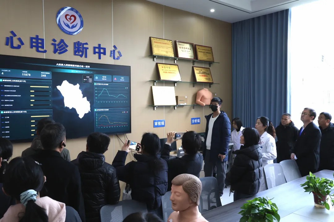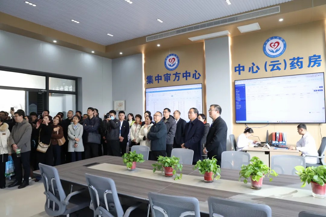 观摩团一行先后实地参观了我院无人机物流枢纽站、“医共体建设发展之路”主题展、MDT会诊中心与转诊服务中心、心电诊断与医学影像中心、审方中心及县域中心药房、五大管理中心等核心功能区域。我院相关科室负责人,分享了在医共体建设中的探索经验与成效,五大中心建设在提升县域医疗服务能力、方便群众就医等方面取得的显著成效,得到观摩团的高度认可。